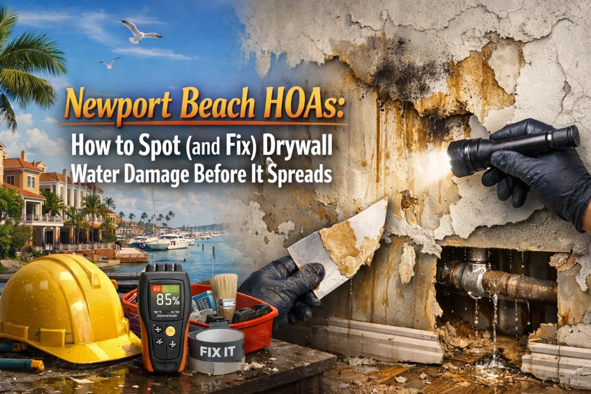 Managing a Newport Beach HOA comes with unique challenges: and water damage tops the list. Whether it’s from coastal moisture, aging plumbing, or unexpected storms, drywall water damage can spread rapidly through your properties. The good news? When you know what to look for and act quickly, you can save your community thousands of dollars […]